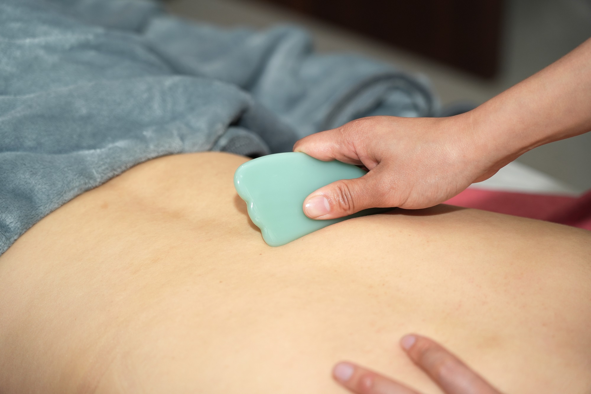 有解表、宣透郁熱和驅(qū)邪的作用,對于咳嗽、咽痛、咽干等熱證,可刮風池穴、風府穴、肩井穴區(qū)域、脊柱兩側(cè)膀胱經(jīng)區(qū)域、 肺俞穴和背部肺的投影區(qū);