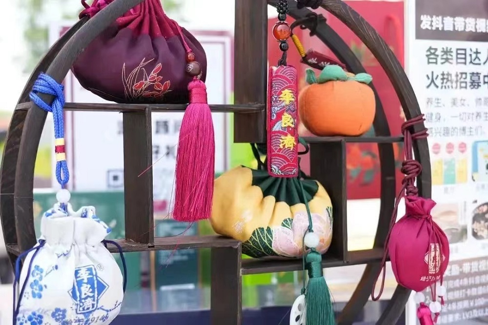 展會期間,李良濟展區(qū),向來往參觀的人,免費贈送端午國風香囊。