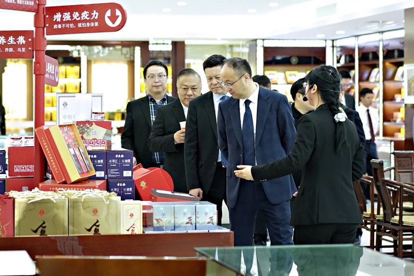 代表團(tuán)們來到國藥館,琳瑯滿目的養(yǎng)生產(chǎn)品映入眼簾。這里不僅有傳統(tǒng)的名貴滋補(bǔ)品,還有廣受現(xiàn)代人喜歡的條狀膏方、養(yǎng)生花茶等中醫(yī)藥健康產(chǎn)品。