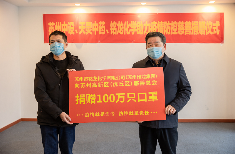 2月19日(今天)下午,蘇州中設(shè)建設(shè)集團(tuán)有限公司、蘇州市天靈中藥飲片有限公司、蘇州市銘龍化學(xué)有限公司疫情防控捐贈(zèng)儀式在區(qū)慈善總會(huì)順利舉行!區(qū)黨工委副書記陸振華,區(qū)慈善總會(huì)會(huì)長蔣國良,區(qū)工委統(tǒng)戰(zhàn)部副部長、工商聯(lián)黨組書記、副主席、“兩新”工委專職副書記王一飛,蘇州中設(shè)建設(shè)集團(tuán)有限公司黨委書記、董事長劉書華,蘇州市天靈中藥飲片有限公司總經(jīng)理徐洪明,蘇州市銘龍化學(xué)有限公司副總經(jīng)理袁志強(qiáng)等出席活動(dòng)。